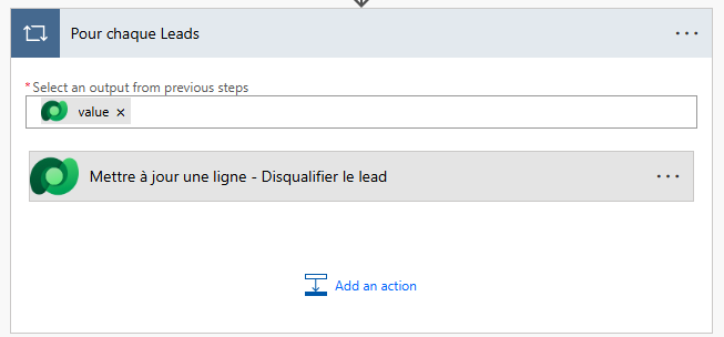 Pour chaque leads, on appel l’action “Mettre à jour une ligne”